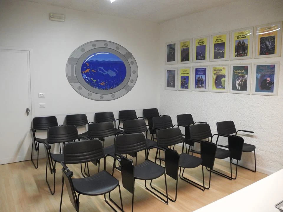 Base immersioni al Lago di Godego e struttura dedicata a corsi e attività subacquee, con aula didattica attrezzata e spazi pensati per scuole, istruttori e club in un ambiente accogliente e professionale.