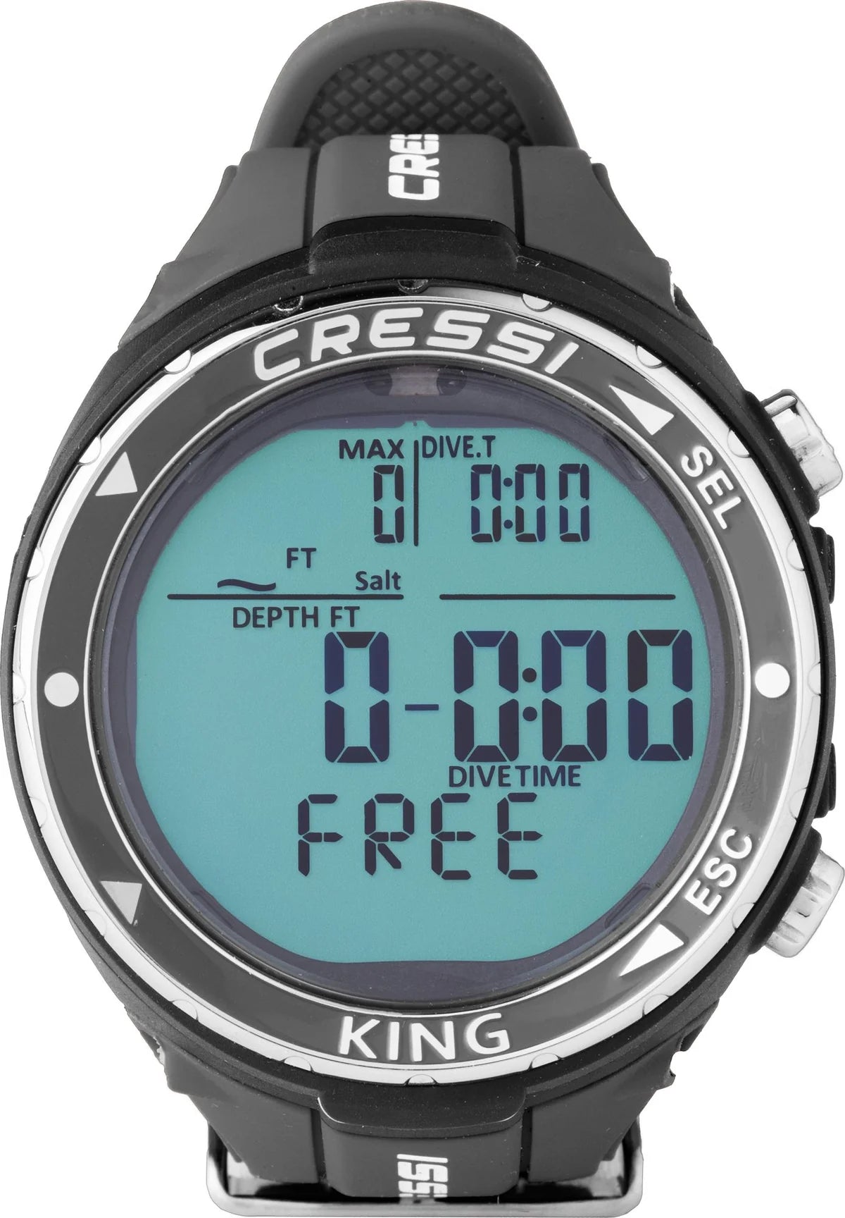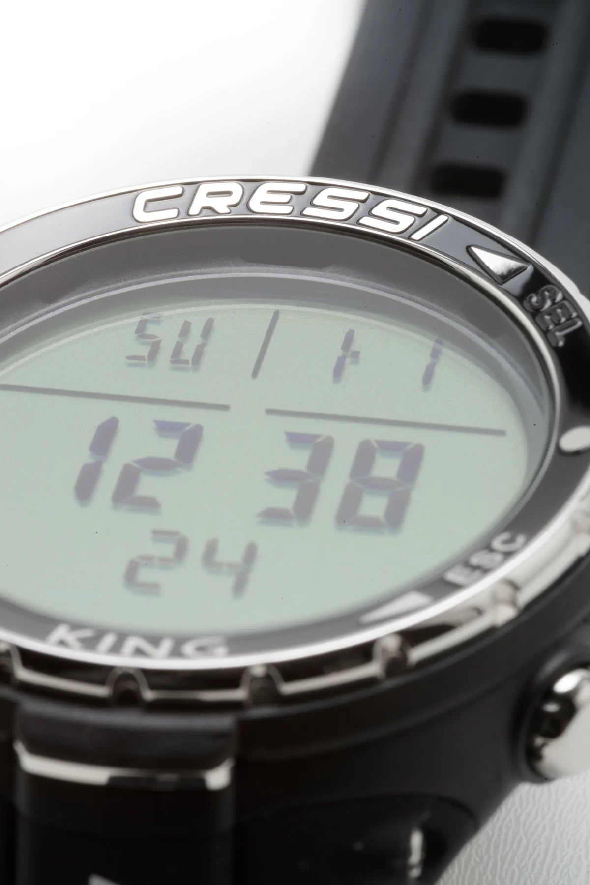 Progettato per soddisfare le esigenze uniche di apneisti e pescatori subacquei, il King utilizza l'algoritmo di riduzione del rischio Taravana di Cressi, che consente ai subacquei di scegliere tra otto diverse impostazioni di recupero tra le immersioni.
