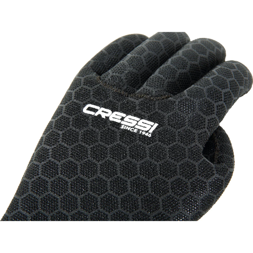 Guanti a 5 dita realizzati in morbido neoprene monofoderato ad alta elasticità. L'interno è rivestito in metallite per facilitare la vestizione. La forma preformata favorisce la posizione naturale della mano, con le dita semipiegate. L'intera superficie è ricoperta da una finitura antiscivolo per una presa sicura in ogni situazione.