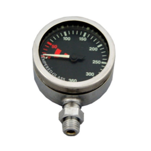 Viene consegnato senza swivel, grazie ai suoi 52 millimetri di diametro e il suo fondo scala da 360 bar si ottiene un’ ottima lettura durante l’immersione.