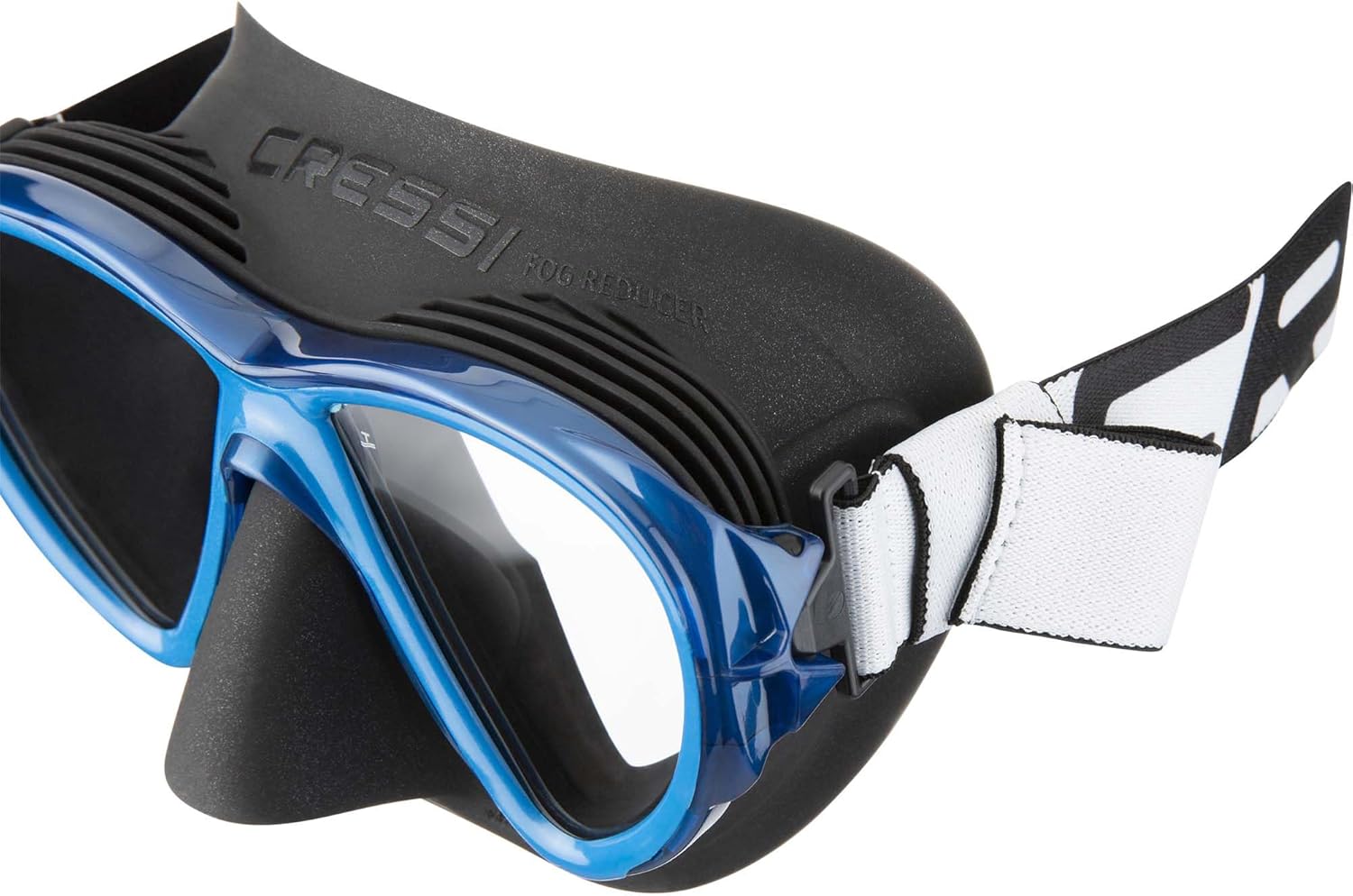 Una membrana brevettata che circonda la tasca interna del naso ed entrambe le tasche interne degli occhi agisce come una barriera e trattiene l'umidità che fuoriesce involontariamente dal naso del subacqueo quando respira con la bocca. il risultato è che non solo l'umidità viene incanalata lontano dalle lenti, evitando così l'appannamento delle stesse, ma riduce anche la necessità di compensare la pressione. per migliorare ulteriormente l'effetto antiappannamento, cressi suggerisce, le prime volte che si usa la maschera subacquea, di spruzzare un po' di soluzione antiappannamento o di applicare un po' di saliva all'interno delle lenti e poi di sciacquarle con acqua.